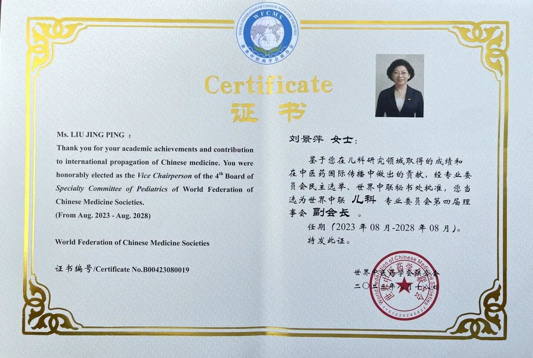 美狮贵宾会药业集团党委书记、董事长刘景萍当选世界中医药学会联合会儿科专业委员会第四届理事会副会长