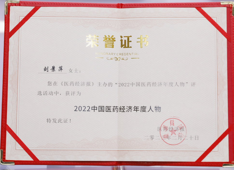 20日,2022中国医药经济年度人物榜单隆重揭晓,美狮贵宾会药业集团刘景萍董事长当选“2022中国医药经济年度人物”。